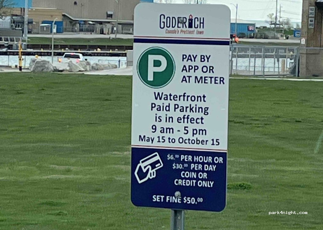 Parking is free here after 6. Spoke with a policewoman who said that they do not ask people to leave overnight. No services at this but the beach is at the very bottom of the hill and there are washrooms by a playground at the end of the boardwalk / at the end of Cove road, the street that goes along the beach - you’d have to drive to those washrooms