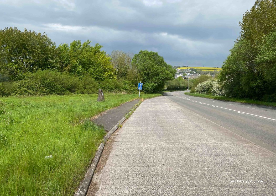On left hand side there’s a lay-by - stayed overnight 24th April 23. No signs, no hassle road is quiet from 11pm. Big space about 20-30 m or so.
