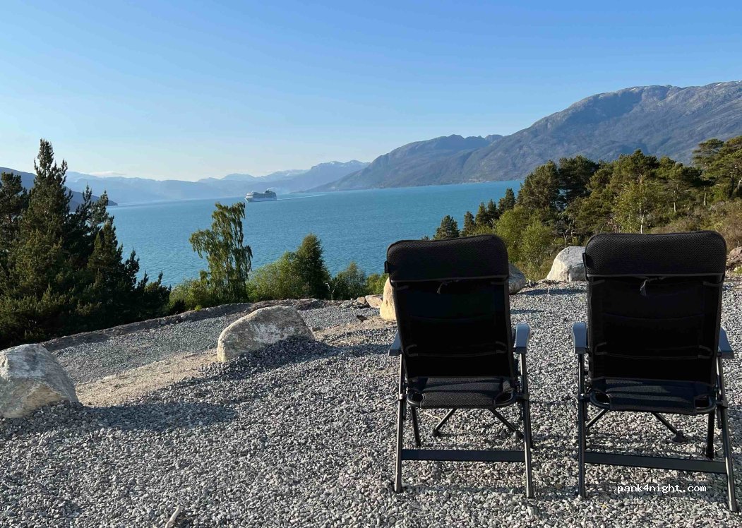 Mega schöne Aussicht, allerdings leider sehr viele Bremsen. Aber Mosquitospray hilft auch gegen diese Viecher. Es gibt verschiedene Terrassen, die alle einen tollen Blick auf den Fjord bieten. Es gibt sehr viel Platz für alle. Nur für Wohnmobile/Vans mit eigener Toilette - wird wohl auch mehr oder weniger kontrolliert (was ich verstehen kann).
