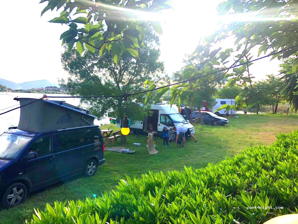 Ganz nett für eine Übernachtung. Platz ist wohl noch ganz neu. Das Restaurant ist gut besucht, aber nicht übermäßig laut. Die Speisen klangen lecker. Die Besitzer sind freundlich. Es gibt keinen großen Schatten auf dem Platz. Der Ausblick auf den See und die Berge ist schön. 15 Euro p. Nacht.