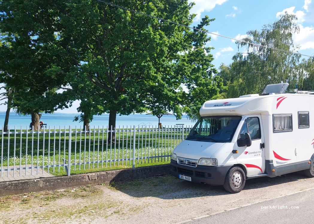 There are more than 3 places along the road, easy access to the beach (2200 huf for 1 adult, 7500 huf for families with up to 4 children / day), we didn’t stay overnight so we cannot comment on how quiet it is but it dies look safe. Residential area, low profile recommended.