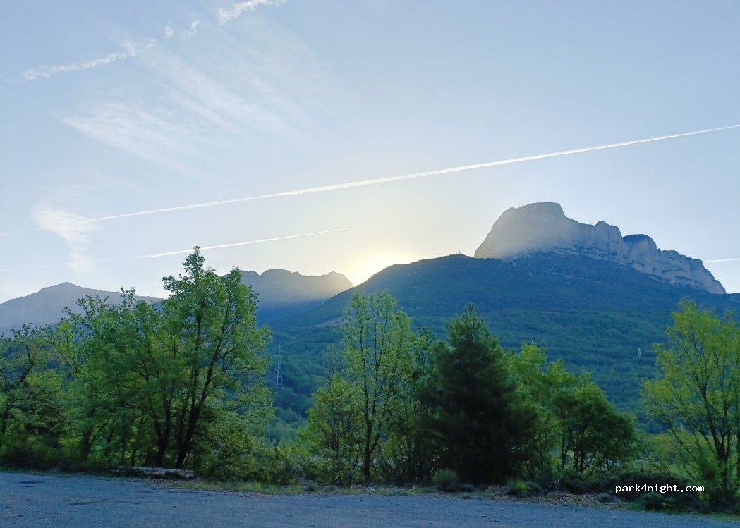 Plaza de aparcamiento al borde de una pequeña carretera con una vista magnífica