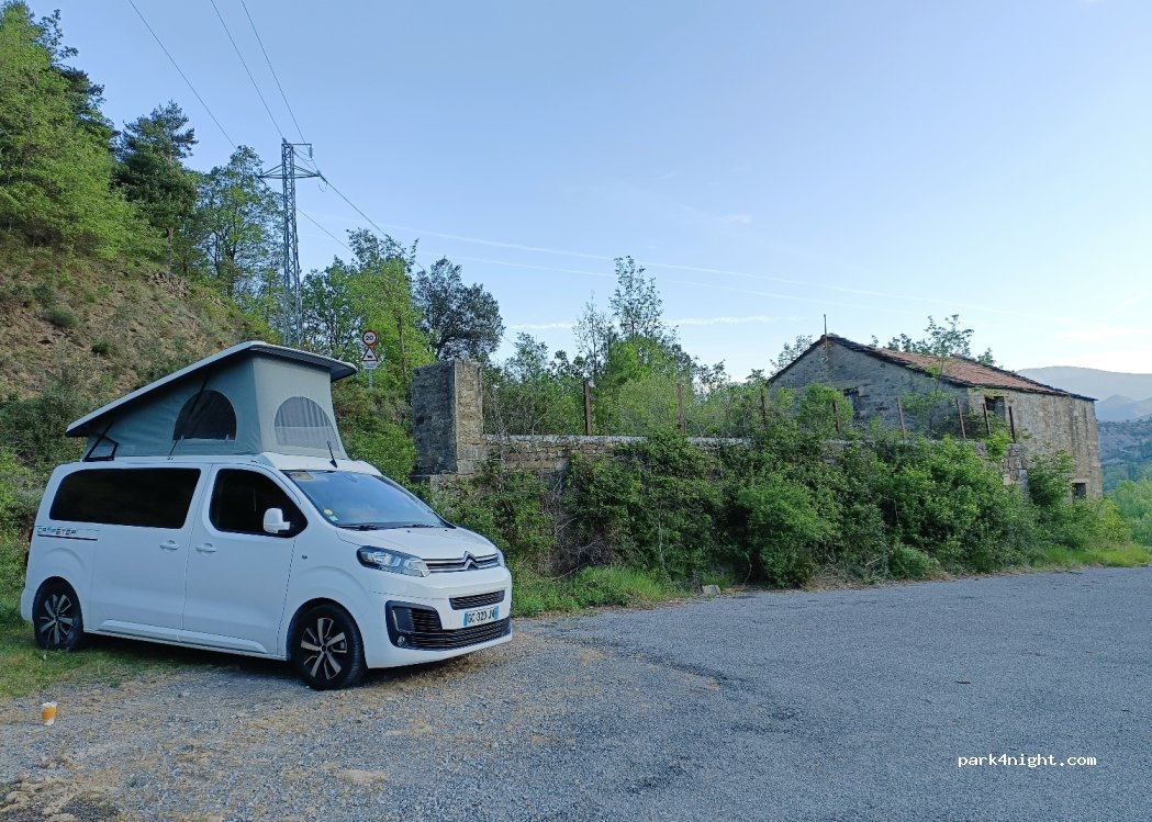 Bord de route en retrait, on a croisé une seule voiture le matin. Jolie vue et ciel étoilé magnifique !