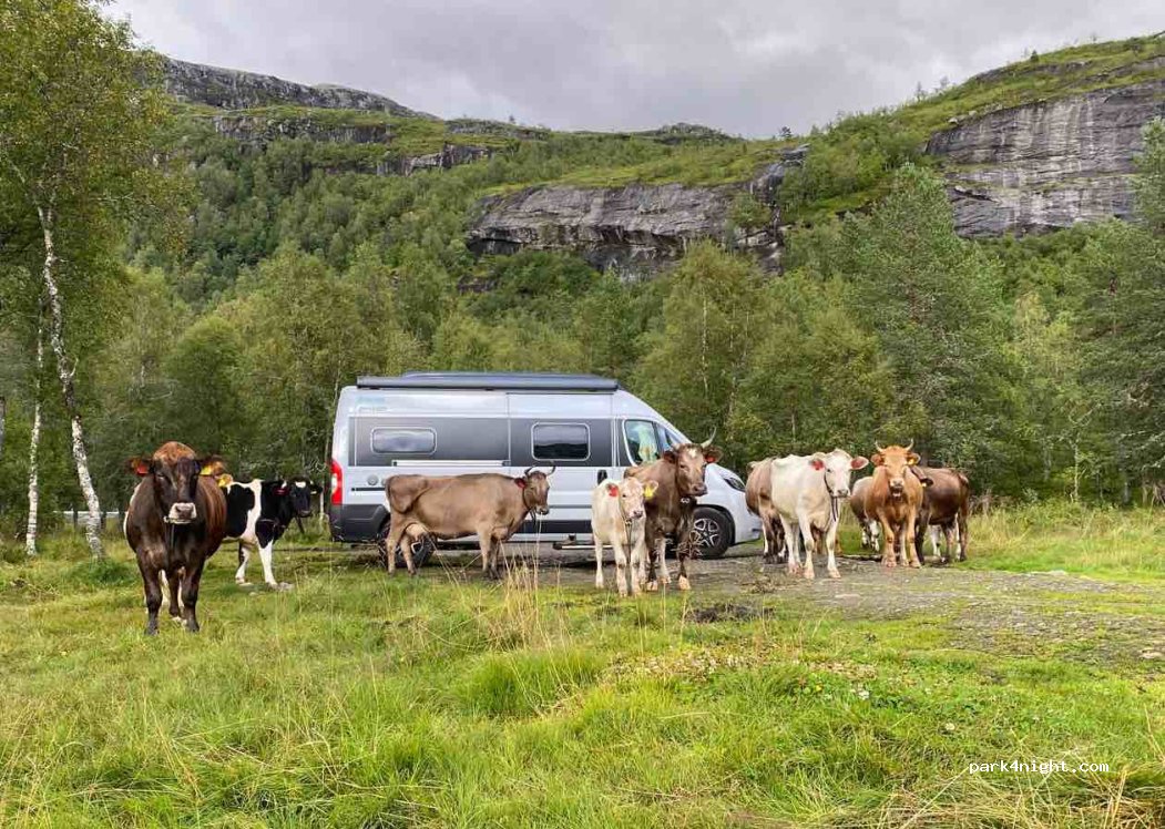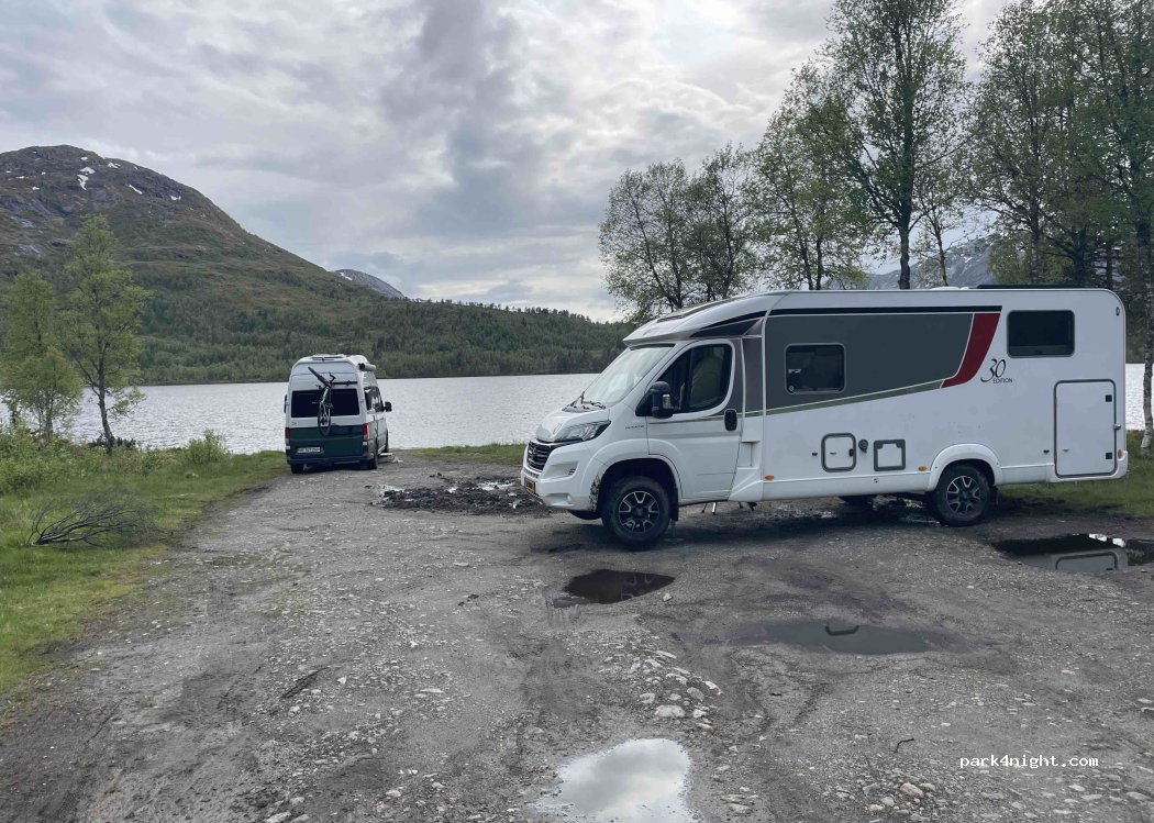 Wie beschrieben, schöner Platz, auf der Zufahrt das erste Mal aufgesetzt, beim rausfahren recht steil um wieder auf die Asphaltstraße zu kommen… Bei dem jetzigen Dauerregen sehr! matschig, wird schwierig beim Wenden und ruckwärts wieder raus ist keine Option, bin weiter zum Hov Hyttegrend …