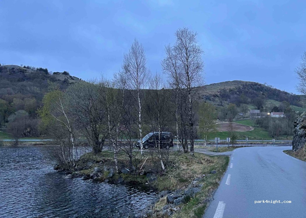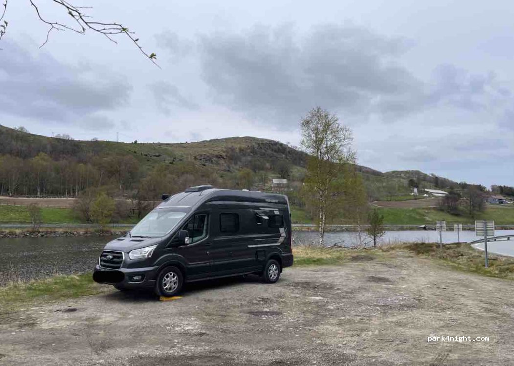 Parkbucht nahe der E49, ziemlich ruhig, direkt am See.