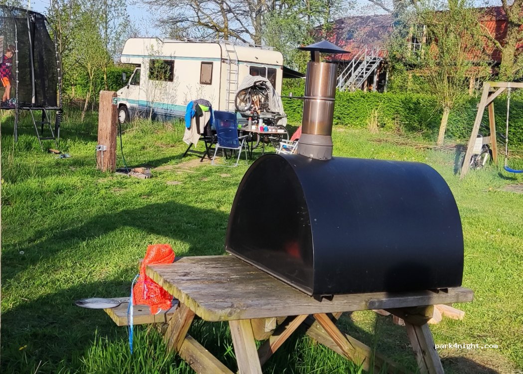 Two small fields, friendly. Pizza ovens are free to use. There are also fire bowls to make a fire. Bring your own wood or buy a bag of wood on site at 10 euros. 1 ladies toilet and 1 men's toilet and two showers. Bring your own toilet paper. No fixed places. Power poles are distributed over the site. You can choose a spot yourself. Small but nice.