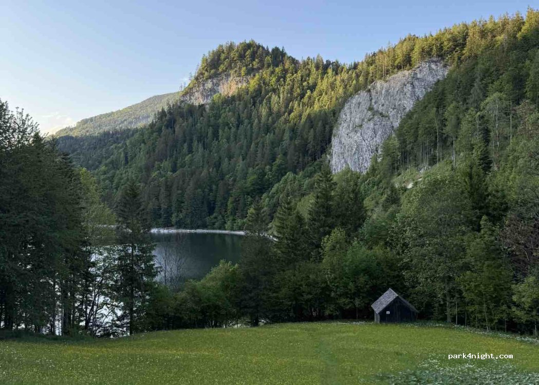 Großer Parkplatz am See, von hier können Wanderungen um den See und zum Wolfgangsee starten. Wir haben eine ruhige Nacht verbracht.Ab Mai ist der Platz kostenpflichtig, es gibt auch einenNachttarif, von 20 bis 9 Uhr für 8€, Tagesticket PKW 3€.