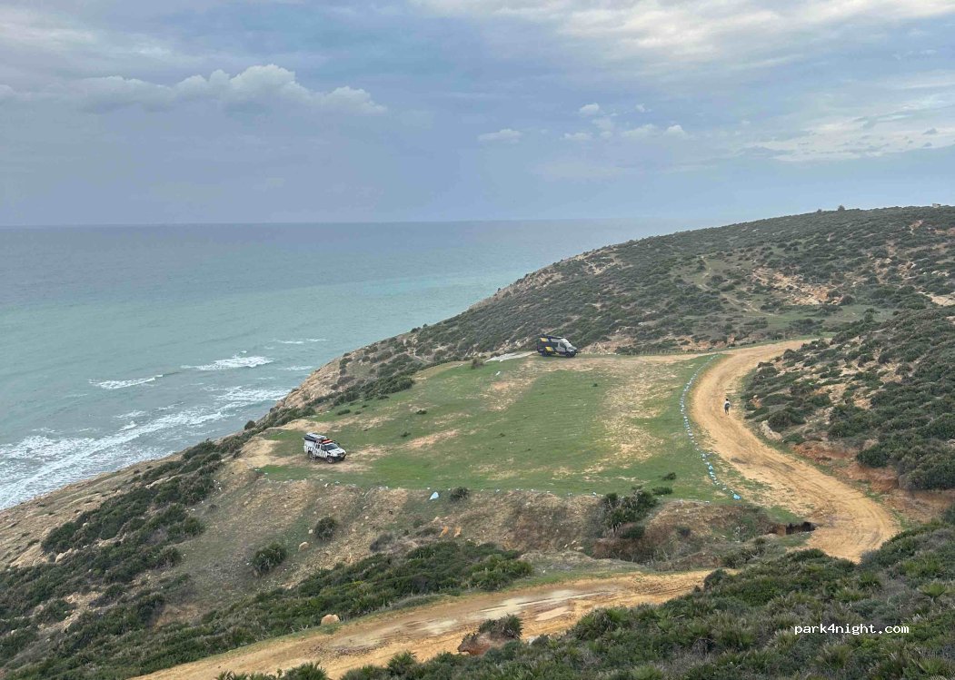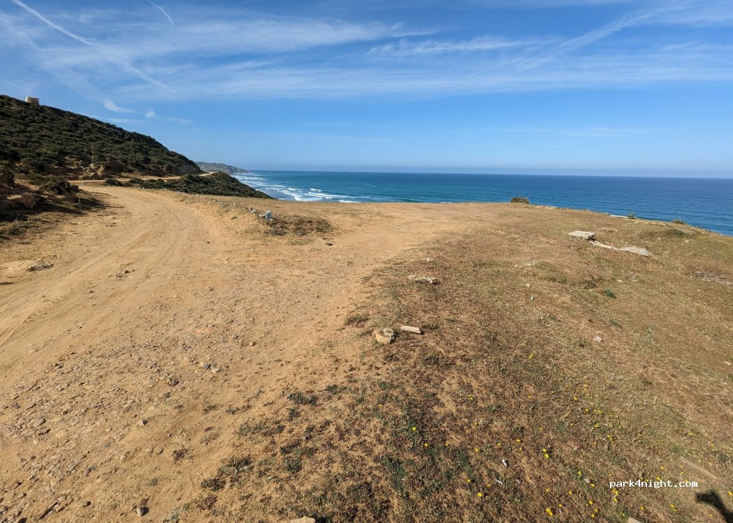 Do not miss this location. Great view of the beach and road as described, however not free. I paid 40 MAD after negotiating with the nice guy attendant. He came back with military and they check&photo the passport so they don’t disturb me during the night.