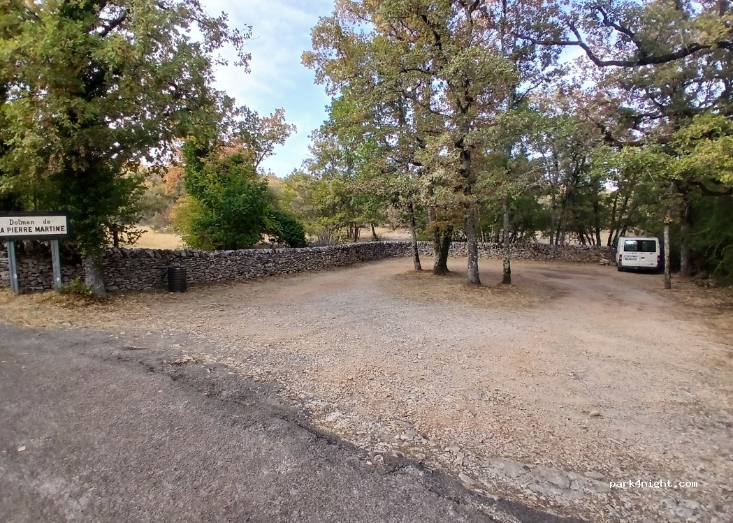 petit parking du dolmen Martine .repas de midi à 200m du dolmen petite route avec un c c de 6,90 pas de problème . bonne route à tous.