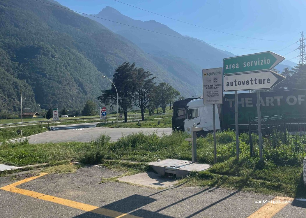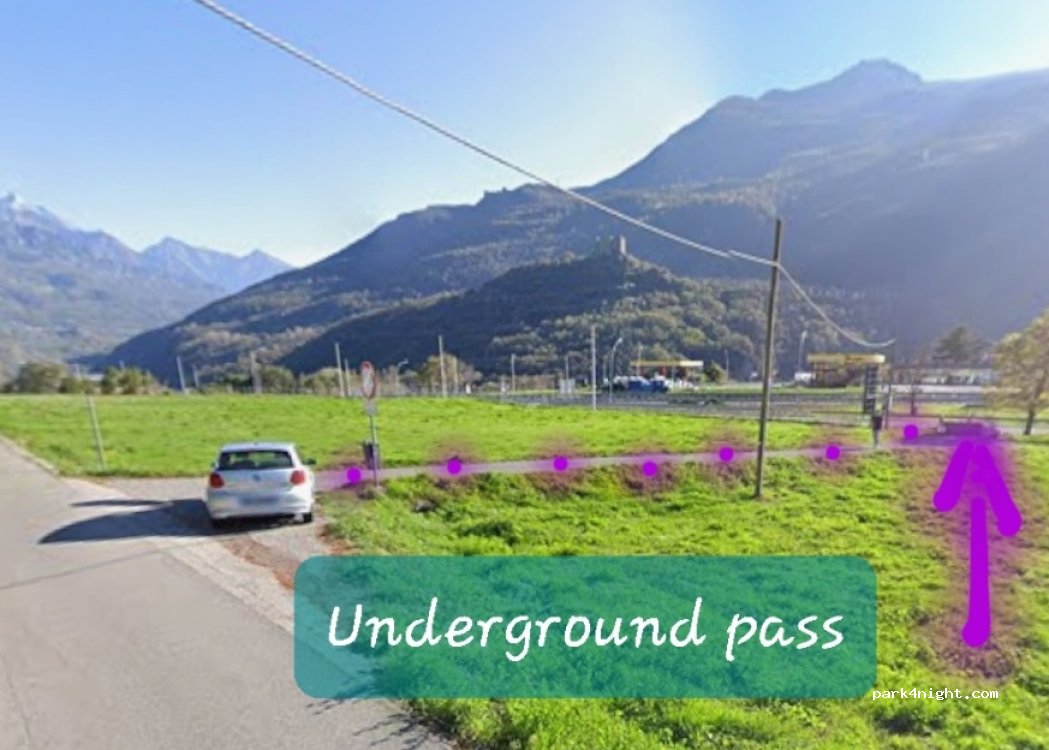 Tip: You can get there without entering the autoroute, you can park in the street next to highway and take the underground pass. The first steeps out is the highway to Aosta and the second it's the Autogrill.
