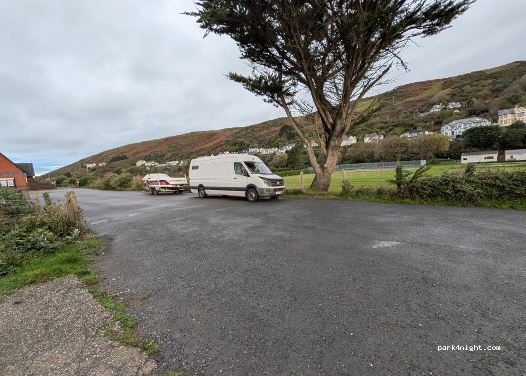 Road next to railway station, behind bowling green. Quiet road, no restrictions spotted. Top of road says railway customers only but that looks like parking for 4 cars set back a little. It is a 2 -5 minute walk to the sand dunes which lead onto the most beautiful beach. Dogs allowed on some of the beach. We ordered a takeaway in Bay of Bengal curry house (15 mins walk) and it was superb. We stayed one night, a couple of vans parked here but left, it was quiet and no hassle so would recommend.