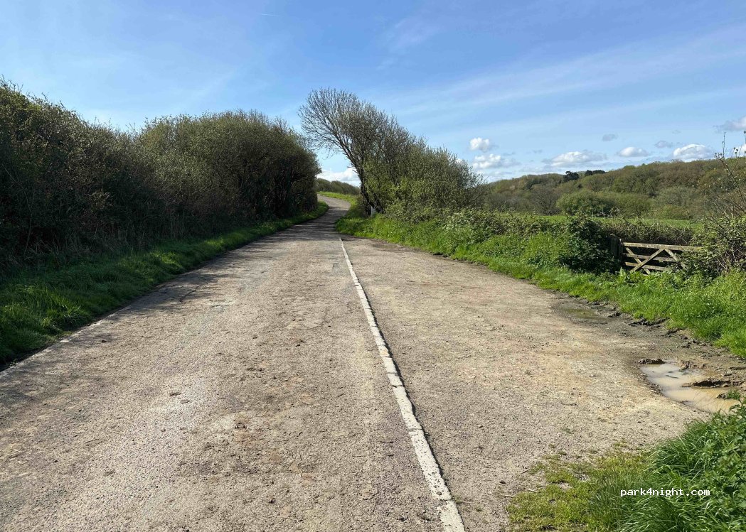 Quiet and relatively flat area with a couple of spots further down the track. A39 is very close so gets noisier from about 7am. Dog walkers and farm vehicles but otherwise an ideal stopover