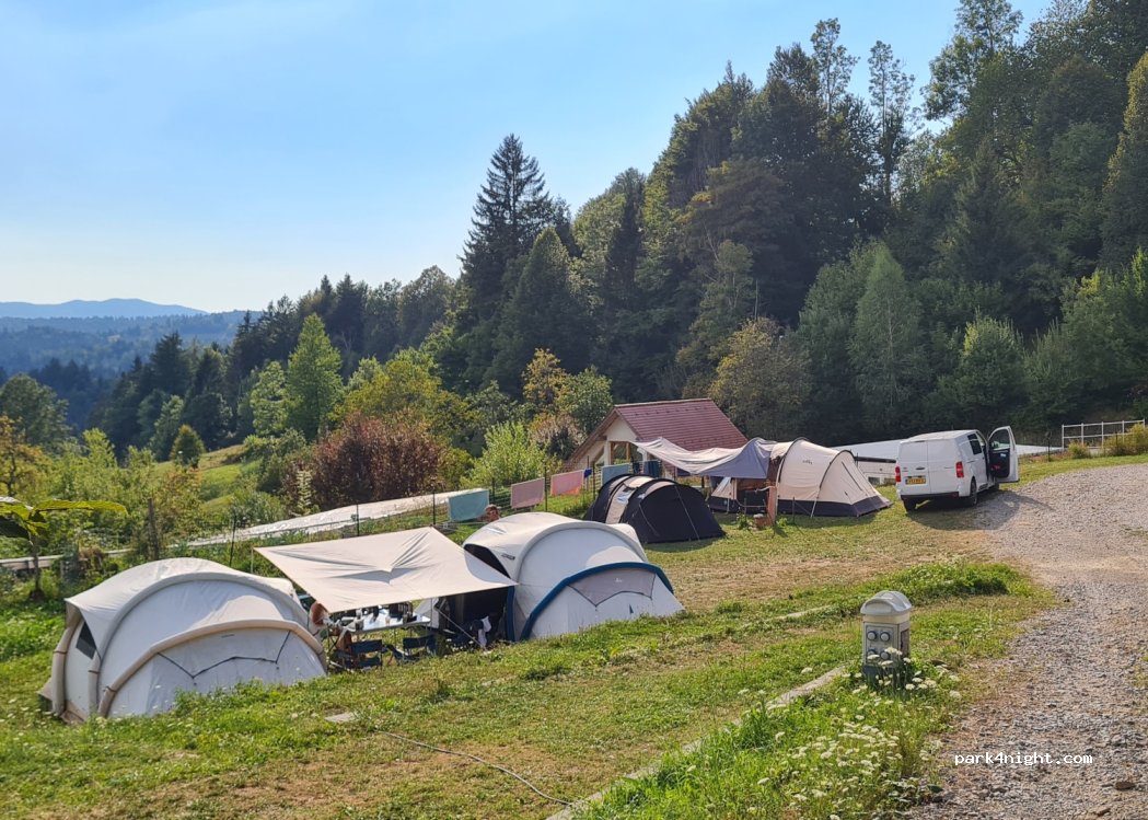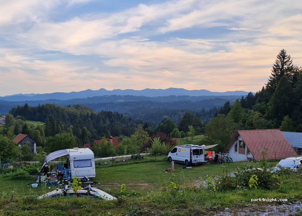 Fantastisch mooie plek! Uitzicht adembenemend en in alle rust, dicht bij de natuur. Borut, de eigenaar, is erg vriendelijk en behulpzaam, en werkt hard om er een mooie camping van te maken. Het is nog niet af, maar de voorzieningen die nodig zijn (toilet, douche, afvoer grijs water en chemisch toilet) zijn voorhanden. Zichtbaar vanaf de camping hebben we herten zien lopen :-)