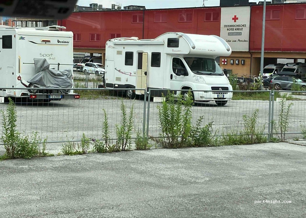parcheggio a 2 km dal centro di Innsbruck. sosta 22 € / 24 h, un po' cara visto che è senza servizi (nemmeno scarico) e senza ombra. con una passeggiata di 30 minuti si arriva in centro e davanti al parcheggio passano anche due linee di autobus (C e M). noi non abbiamo percepito il rumore ed abbiamo dormito bene.