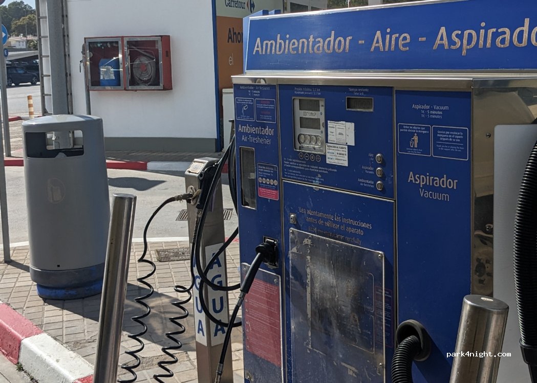 Gasolinera Carrefour con conexión de agua gratuita. Sin embargo, no doy garantía de agua potable ;).