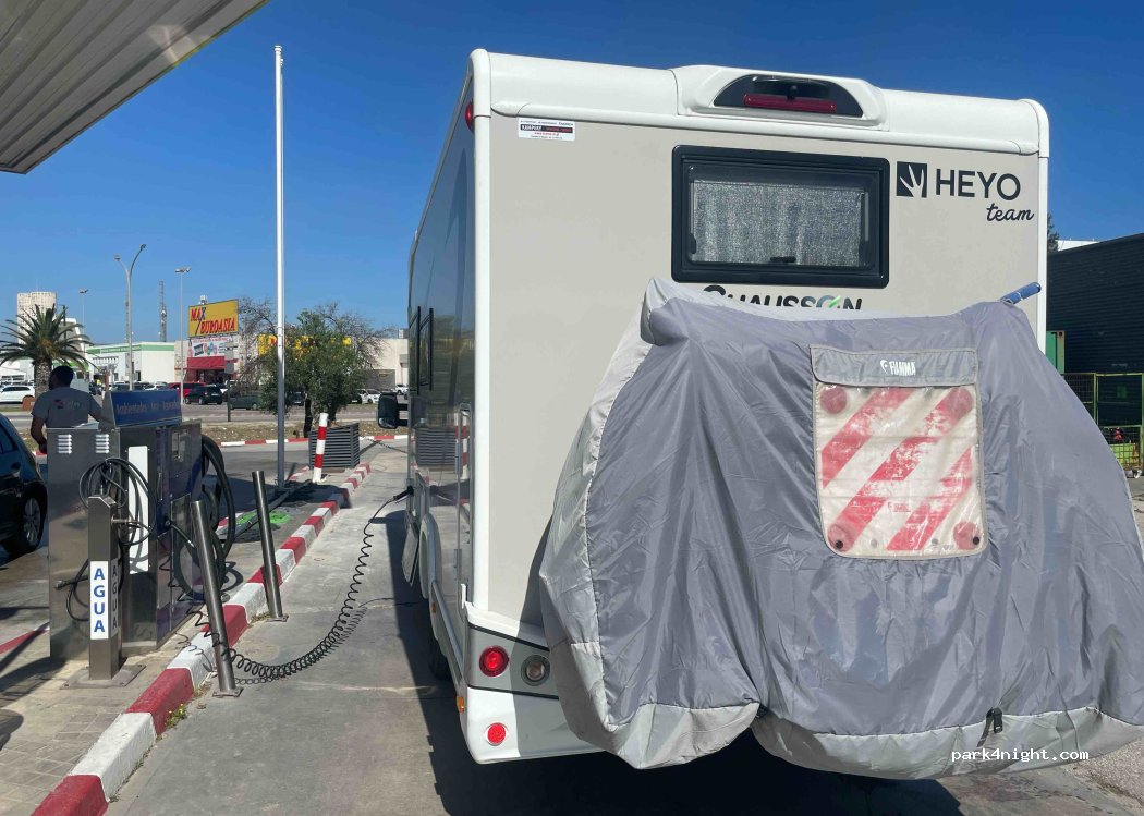 Carrefour gas station with free water connection. However, I do not give a guarantee of drinking water ;).