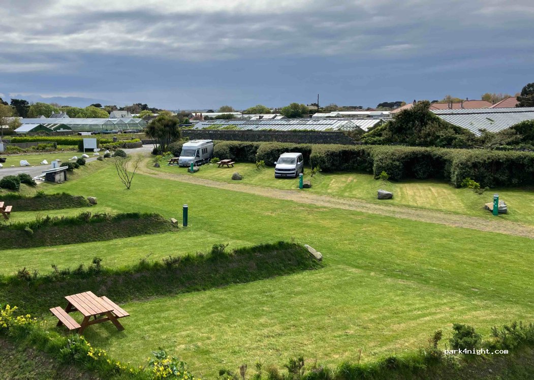 … suite du commentaire précédent / Attention, les ligne de bus s’arrêtent vers 20h … Cette aire est donc trop éloignée pour permettre une sortie vers St Peter port. . Les routes étant très très étroites, le véhicule n’a pas bougé durant notre séjour.