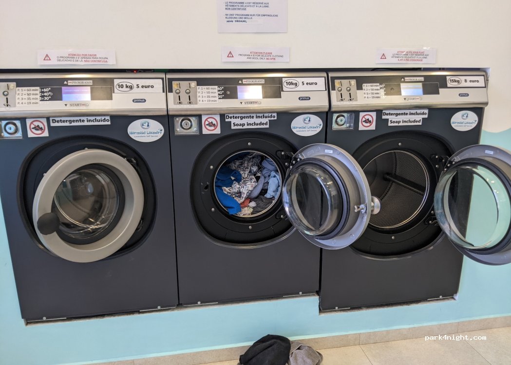 Unattended laundry station. Soap powder included in the washes (although threw in some of my own) AND had a change machine for notes, 10 mins (€1) was all that was needed for smalls, heavier times took 20mins to dry.