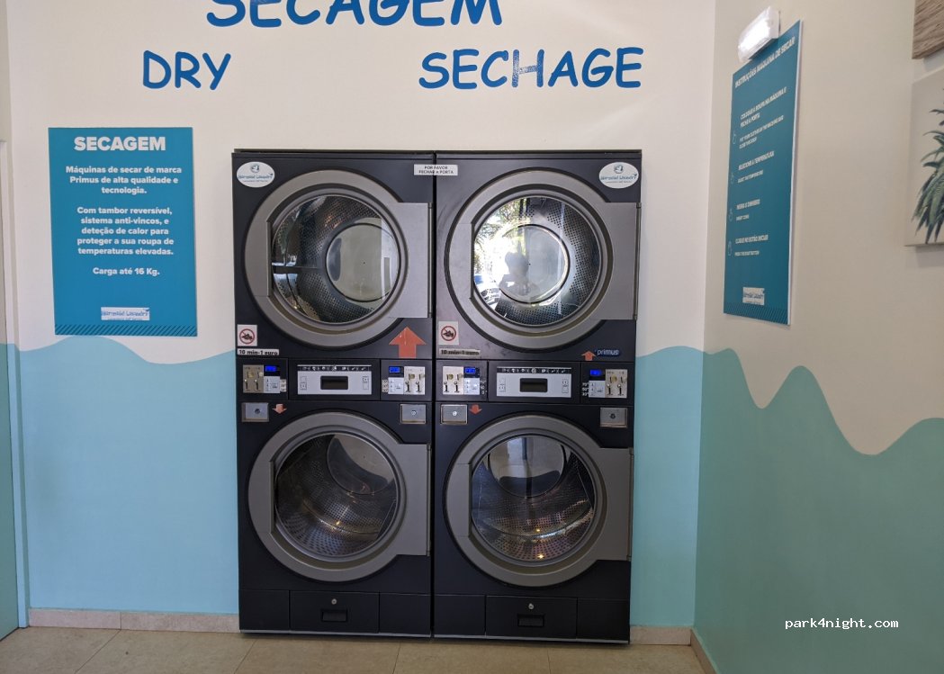 machine à laver (compris lessive) 2x10kg à 5€ et 1x18kg à 8€ et séchoir 4x18kg à 1€/10min. Bon débit WiFi. Parking gratuit le week-end en basse saison. Machine pour faire du change (billet/monnaie)