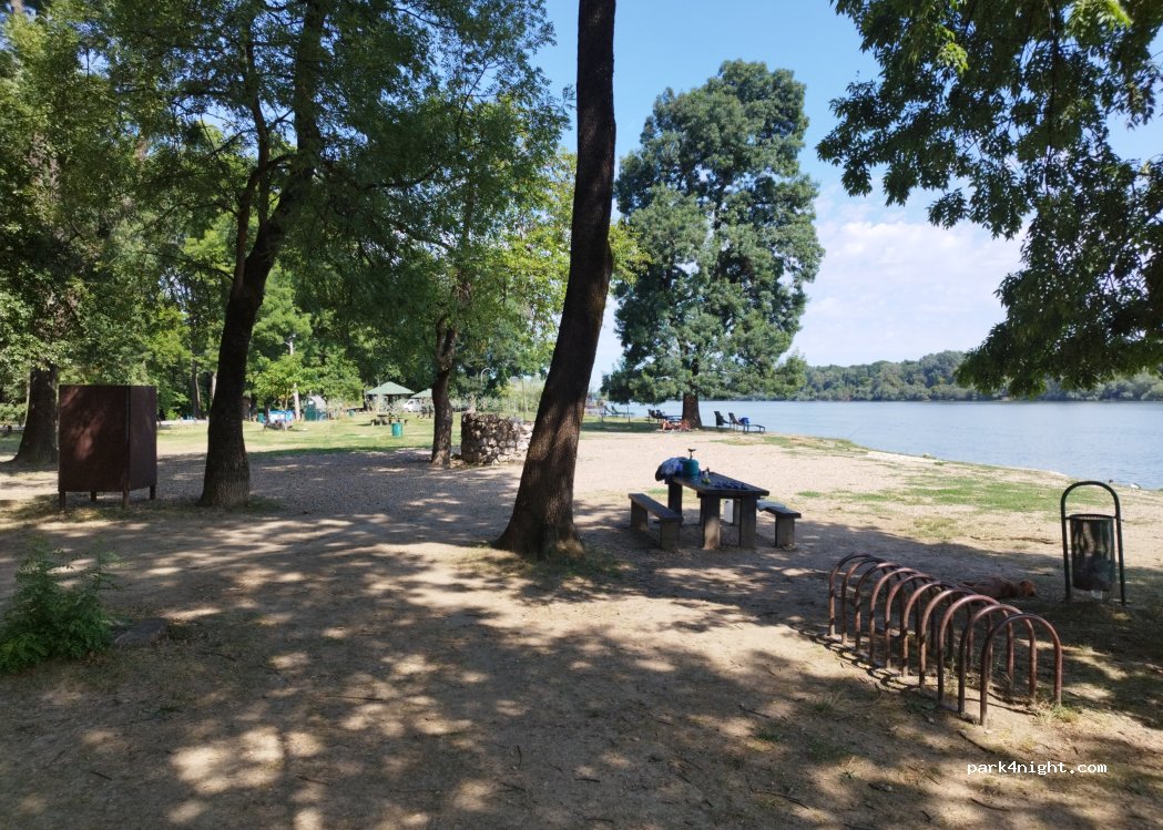 Jak na Serbię całkiem dobry bezpłatny parking w parku nad rzeką. Dostępne prysznice, ławeczki że stolikami, przebieralnia, kible TOI-TOI Trochę głośno, bo miejscowi masowo tu wypoczywają. Woda w rzece raczej nie do kąpieli, chociaż widziałem osoby które w niej pływały. Teoretycznie nie wolno parkować poza linią drewnianych słupków odgradzających drogę od części plażowej. Bezpiecznie i dość czysto