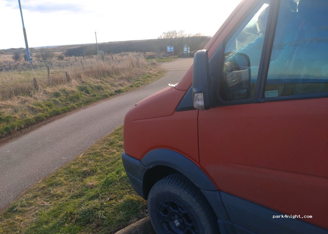 Quiet spot after around 8pm, dog walkers/ cars coming and going in the car park. Dull humming noise coming from windmill, but not unpleasant or an issue. Nice walks nearby. Only 2 other vans staying.