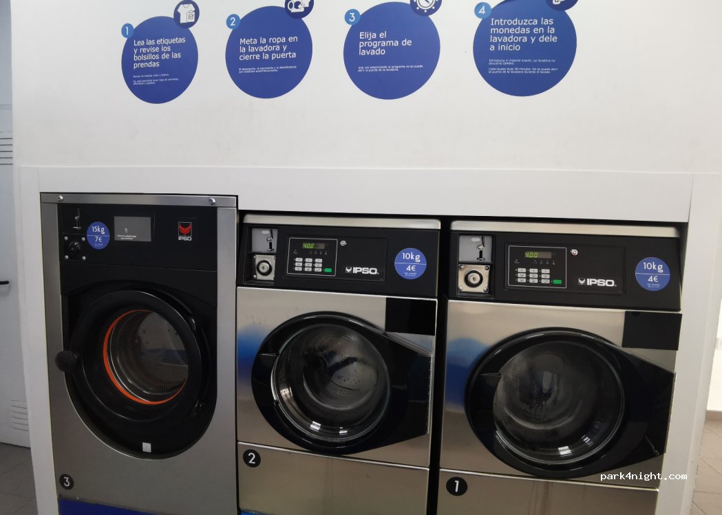 Kleine Wäscherei, 3 Maschinen (10-10-15 kg) und 2 Trockner. Waschen in 30–40 Minuten.