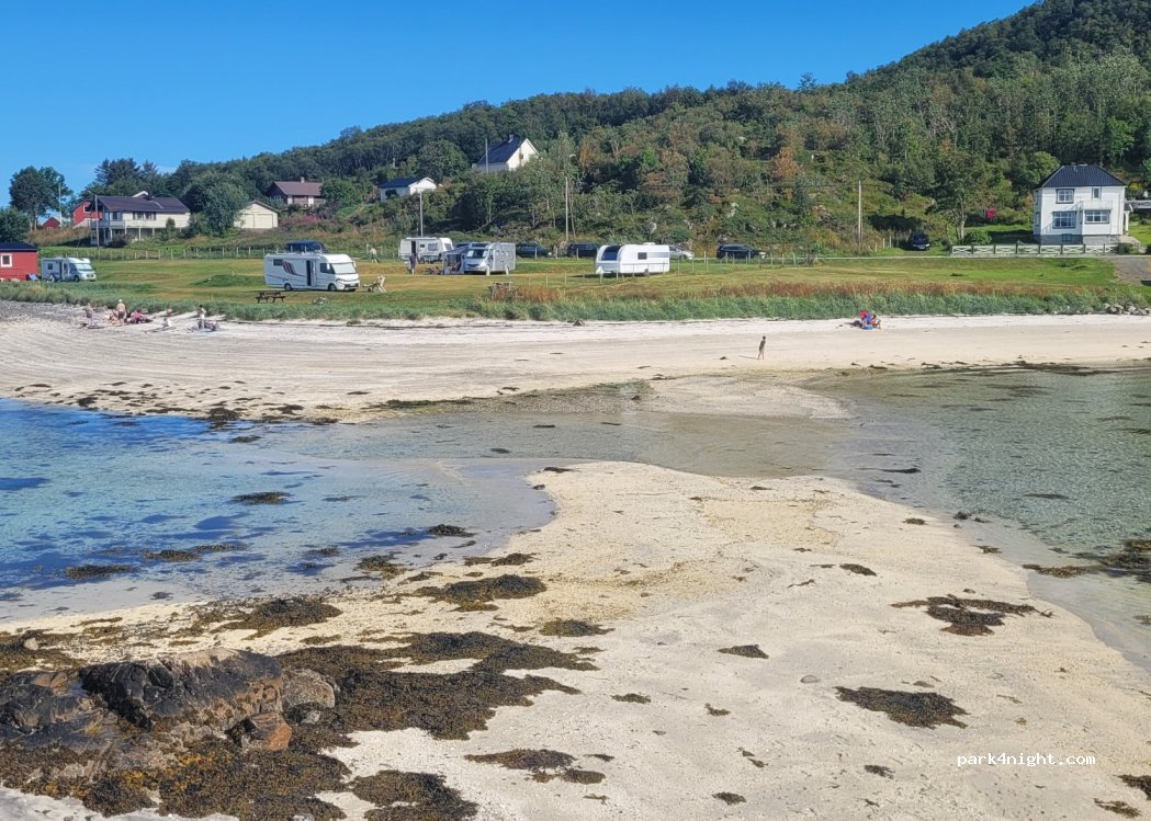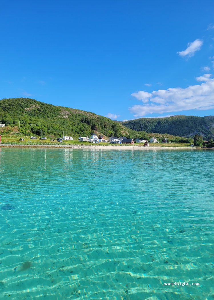 Dieser kleine Platz ist ein Kleinod. Erreichbar über eine kleine, selbst tagsüber sehr wenig befahrene Straße standen wir eine Nacht in dieser wunderschöne Bucht. Herrlich ruhig. Die wenigen Häuser scheinen überwiegend Sommerhäuser zu sein. Der Selbstservice ist unkompliziert. 275 NOK online bezahlt und gut. Der Untergrund ist fest mit kurzem Gras. Für Strom brauchten wir einen Schükostecker
