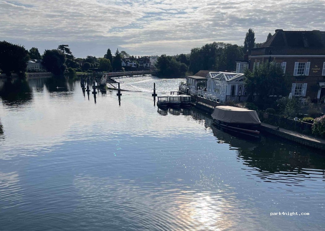 So glad to stop here as none of car parks welcomed vans (some height barriers & other weight limit…) quiet night & nice morning having a wander with so many locals on walk to temple lock alongside river thames & people playing tennis opposite from 8am onwards. PS avoid VERY narrow bridge & as only 3Tonnes into Marlow