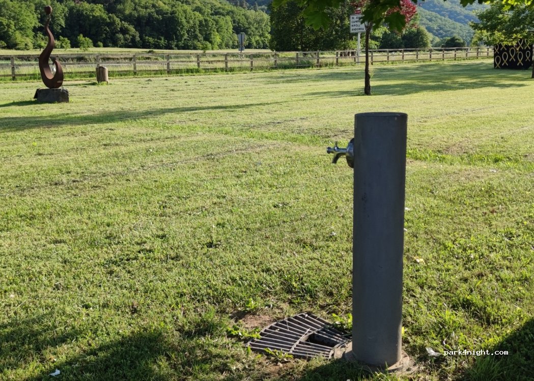 Un endroit parallèle à la route avec beaucoup d'herbe et une table pour manger et à côté de la table nous avons une fontaine où nous pouvons faire le plein d'eau. l'endroit est à côté d'une entreprise de logistique de transport. avec des petits bruits rien de gênant et avec le passage de telle ou telle voiture sur la route principale mais vous êtes loin de la route. idéal pour passer une nuit à faire le plein d'eau et continuer le voyage. les enfants et le chien apprécieront beaucoup.