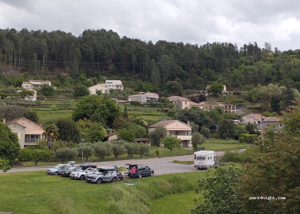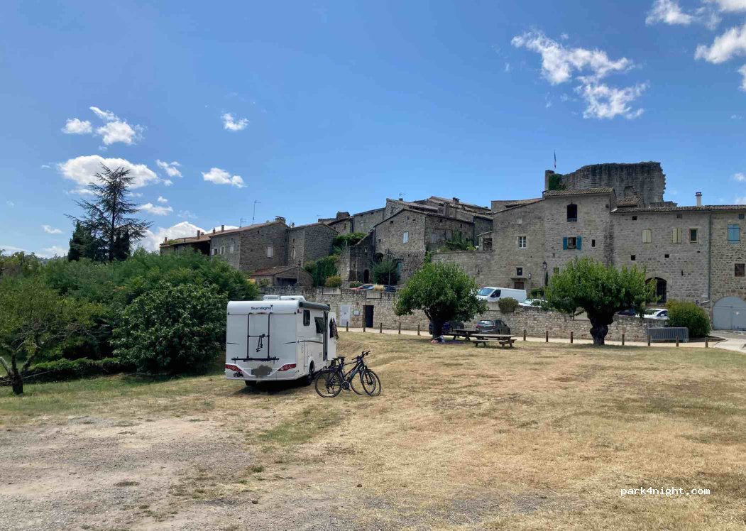 • Komende van Aubenas zijn het smalle straten om hier te geraken, ik volgde Maps. Redelijk vlakke plaats en rustig, vlakbij de ruïnes en de reparatie. Geen diensten buiten vuilbakken. Met dank aan de gemeente.