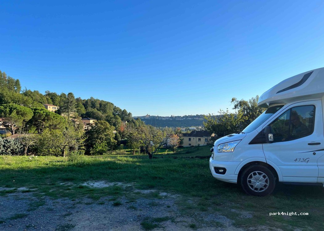 très bien pour une nuit nous étions 3 cc très joli village de la randonnée emplacement plat propre calme vue sur aubenas respecter cette endroit tri sélectif merci la municipalité