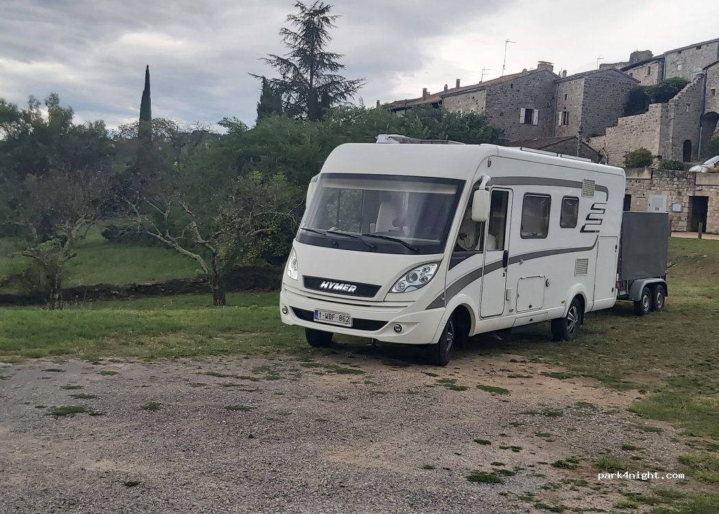 Herrlicher Platz mit wunderschöner Aussicht. Absolut ruhig. Besonders bei untergehender Sonne ein traumhafter Blick ins Tal, wenn man sich durch die kleinen Gässchen des Ortes einen Weg sucht. Der Weg zum Dorf (bis 3,5 t) hat sich gelohnt. eine Entsorgungsstation, aber bei so einem Dorf ja auch verständlich. Bitte schont die Natur. Die Kräuterwiesen sind ein Schatz ! Wir bleiben noch eine Weile.