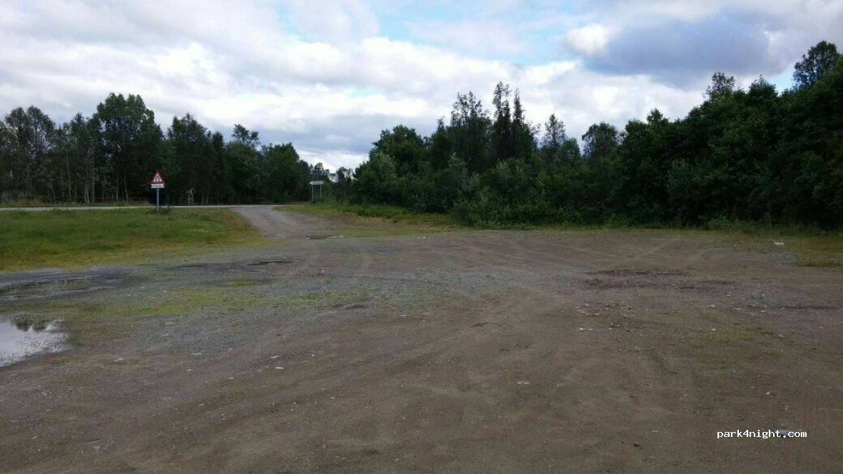 Amplio estacionamiento frente a Tromso y frente a un pequeño cementerio sin iglesia. Sin pretensiones pero bien para la noche y hay espacio.