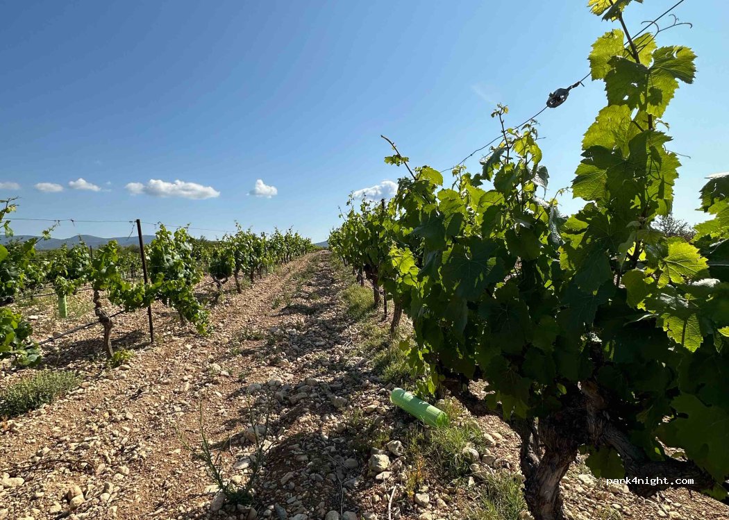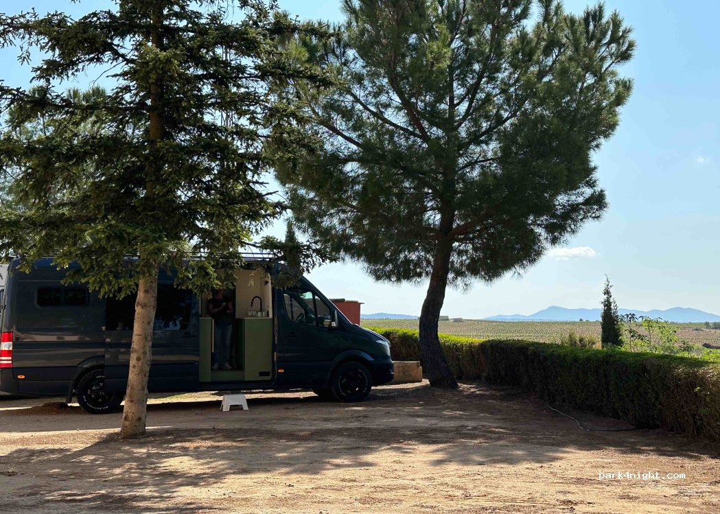 très belle étape dans le domaine Vera Estenas .nous avons été accueilli par Edouardo petit fils et propriétaire. Nous y avons mangé un excellent menu. Les emplacements sont parfait pour les vans ou fourgons à voir pour les plus gros...Sans oublier que leurs vins sont bons ...