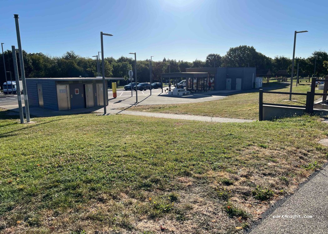 Je ne pense pas que l’accès soit totalement le même dans les deux sens. Mais dans l’axe sud->nord un endroit sympa, la croissanterie, des tables, une aire de jeu. Des emplacements assez longs et peu de monde. Toilettes propres. Idéal pour une nuit sur la route sans s’éloigner.