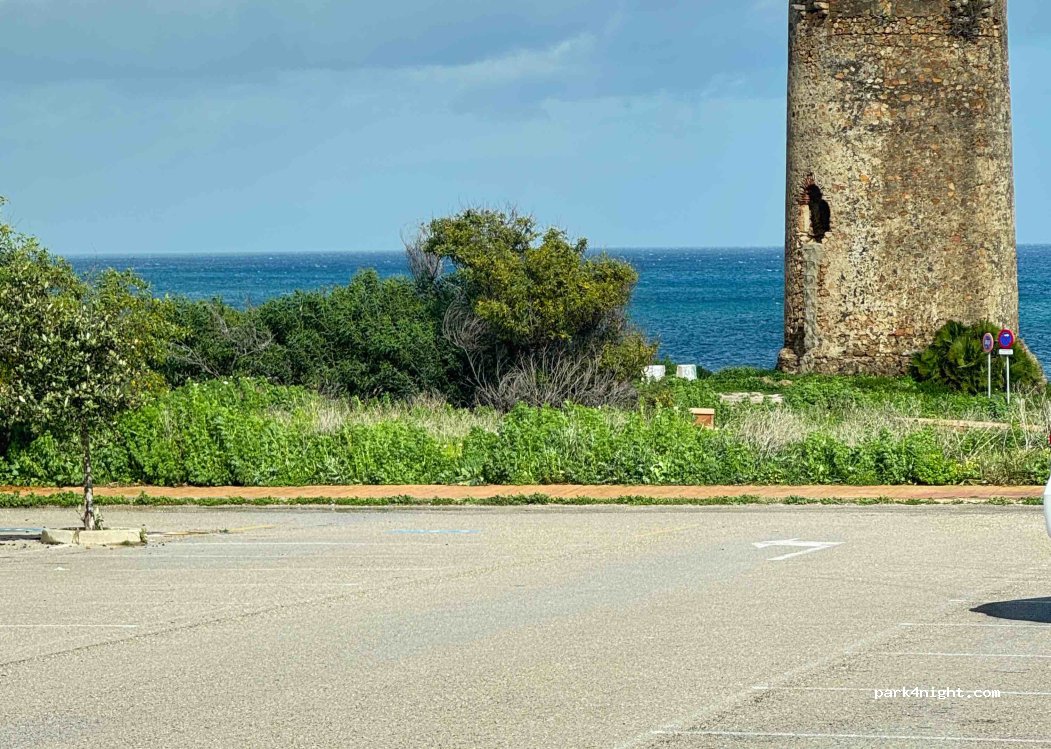 Nice medium sized parking next to well maintained beach and ancient watch tower. Amazing view of Gibraltar rock. No services.