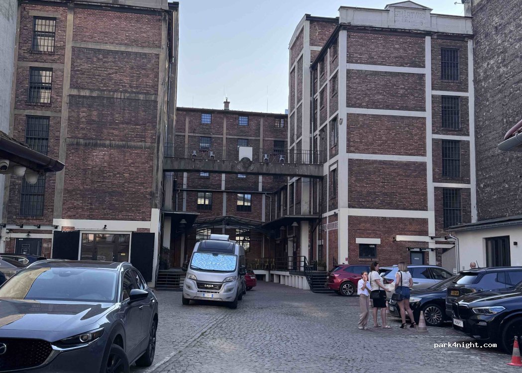 Parcheggio sicuro a 15 minuti a piedi dal Barbacane. Guardie presenti durante il giorno e codice di accesso per la notte, a 80 zl. per 24 ore. Nessun servizio, gli unici difetti sono il parcheggio non in piano (inclinato lateralmente) e il posto molto in ombra, tanto che il pannello solare non riusciva a caricare.