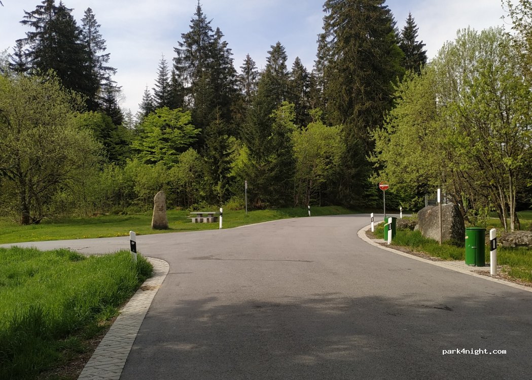 Platz neben der Autobahn. Ideal zum Übernachten, man hört das vorbeifahrende Auto, stört aber nicht sonderlich. Schöner Wald daneben.