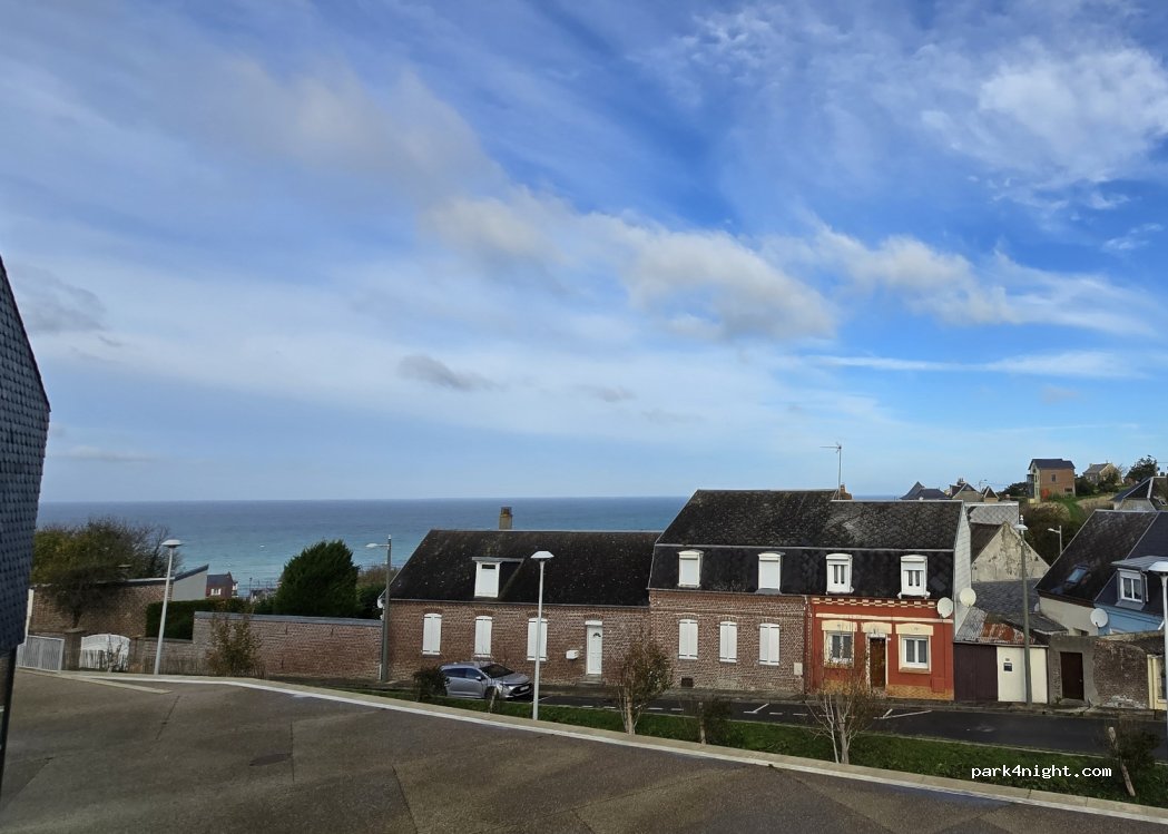 Très grand parking gratuit sur les hauteurs d'Ault . nuit calme. Pas de services.