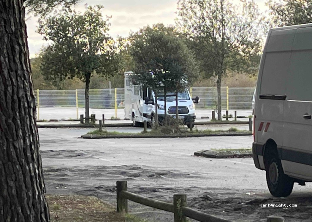 Height barrier open, several motorhomes. Perfect for parking and waking into vannes centre. Ramp to enter, several drag marks so position yourself carefully to enter. We missed it and not very well signposted so just drove around roundabout