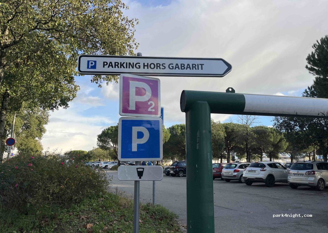 Enfin un parking pour camping car. Il y a 2 parkings avec des barres à 2m et entre les 2 un parking "hors gabarit. Très bien pour les camping car.