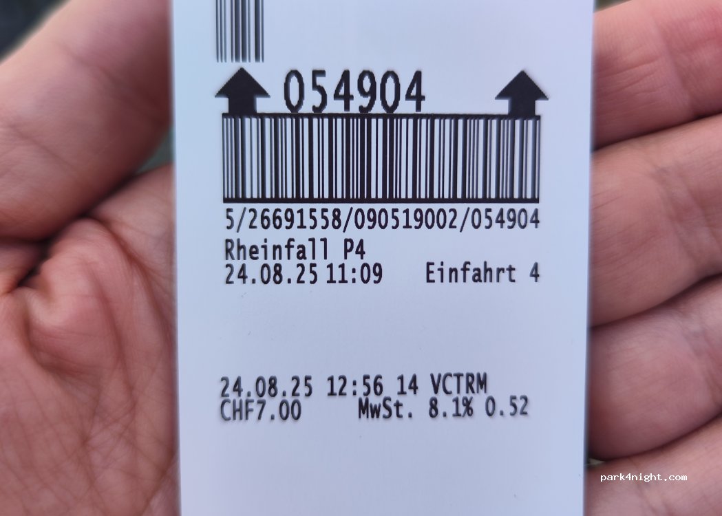 Das war ideal. Vielen Dank für den Tipp mit dem P3. Wir sind Nachmittags gekommen und haben ab 18.00 Uhr nichts mehr bezahlt. Nur die normale Parkzeit davor und konnten dann bis Morgens 9.00 Uhr kostenlos bleiben. Die Toiletten waren nachts geöffnet. Es steht wirklich nirgends dran. Nachts hört man nur das Rauschen vom Rheinfall.