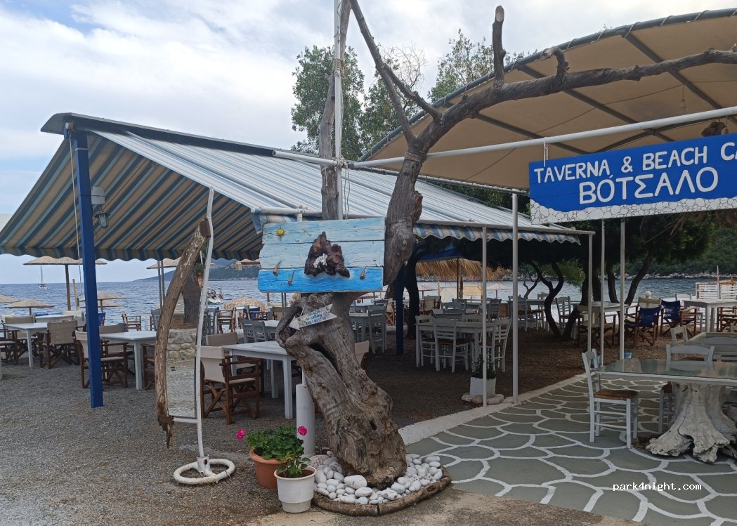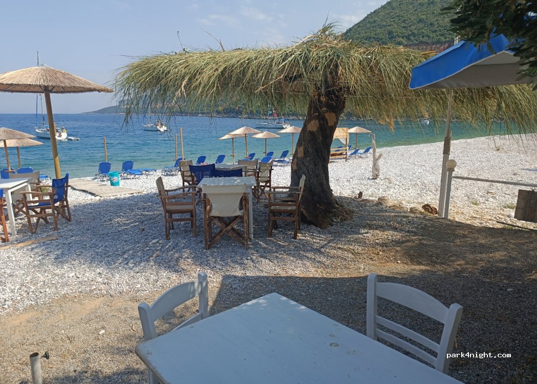 abbiamo sostato nella spiaggia a destra della taverna posto stupendo per due notti, nella taverna si mangia bene con prezzi buoni porzioni abbondanti propietari gentilissimi e ospitali,fatto rifornimento acqua.