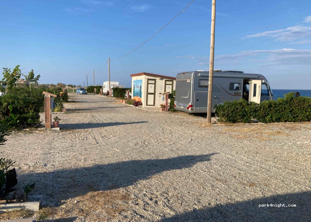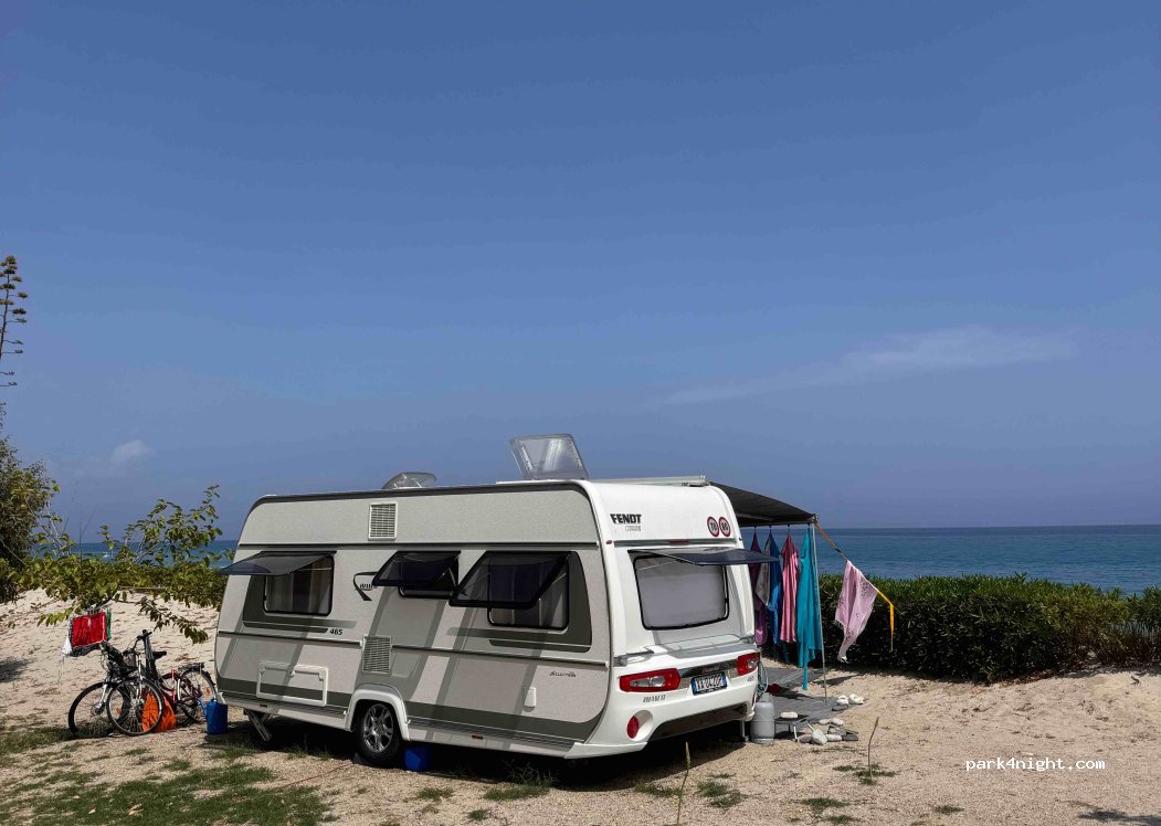 Allerherzliche Familie, die den Platz betreiben. Wenn möglich an der Düne parken (10 Ampere Strom), wunderbare Aussicht aufs Meer und weniger Verkehrsgeräusche (Strasse ist wenig befahren). Eigenes WC mit Dusche hat überzeugt, nachdem was wir in Süditalien alles angetroffen haben :-( . Das Restaurant ist zur Zeit im Umbau.