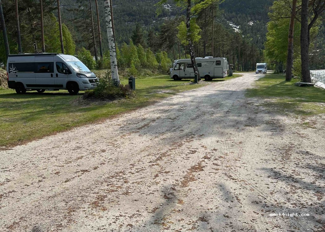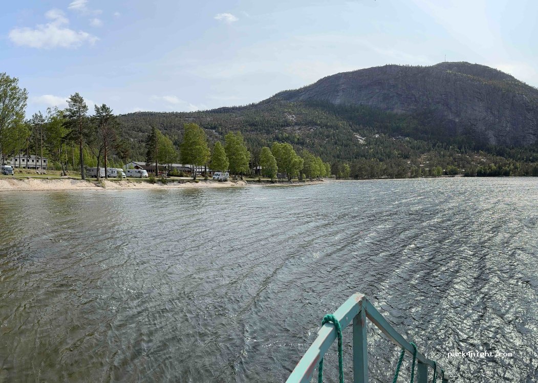 Saga Camping in 3855 Treungen. Space for about 25 - 35 mobile homes right on the lake. Nicely located. The sanitary facilities are rather old underground, but you can use them. But the location makes up for it. Hiking trails in the immediate vicinity of the Skuggenatten, about 4 kilometers with a viewpoint. Supermarket Coop and Spar within walking distance.
