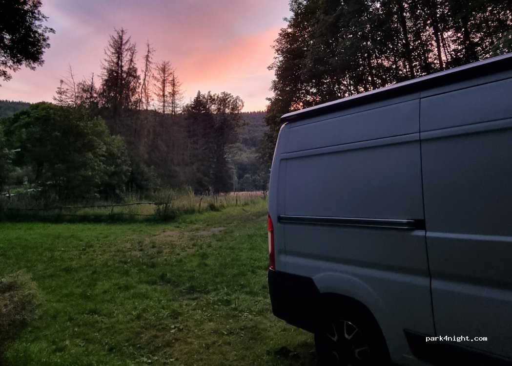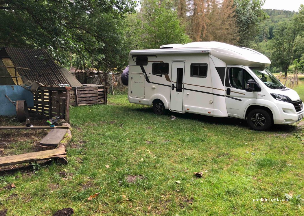 Emplacement très calme sur une prairie forestière, directement à côté d'un ruisseau de montagne. L'emplacement de stationnement est suffisamment éloigné de la route pour que le trafic aux heures de pointe, qui commence à 6 heures du matin, ne soit pas entendu et ne perturbe le sommeil de personne ! Les grands arbres qui bordent la « Gera sauvage » étendent leur voûte de feuilles sur le camping ! Ils fournissent de l’oxygène, de l’ombre et une brise fraîche ! Il est ouvert 24h/24 et aucune inscription préalable n'est requise !
