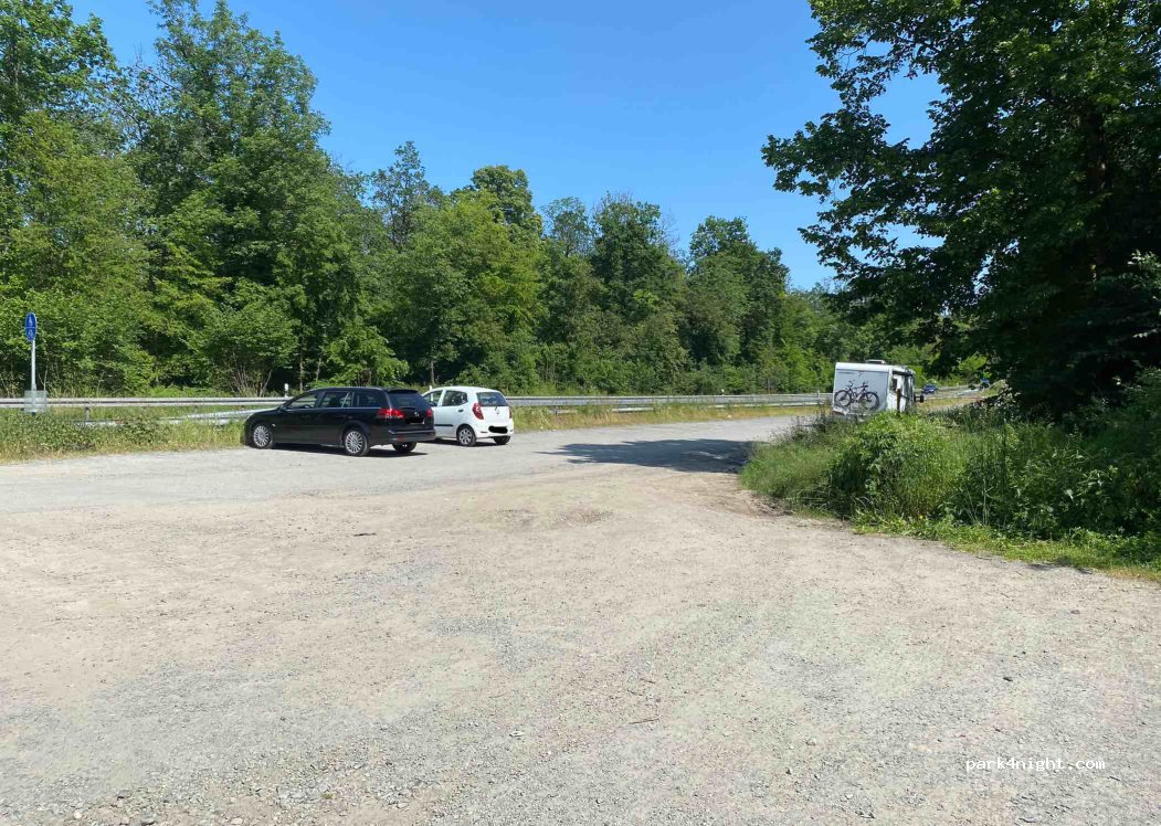 Als Mitfahrparkplatz ausgewiesen. Ausgangspunkt für Walkingstrecke. Nah der Autobahn. Für uns die Möglichkeit Pause zu machen und eine halbwegs schattige Runde im angrenzenden Wald mit Hund zu gehen.