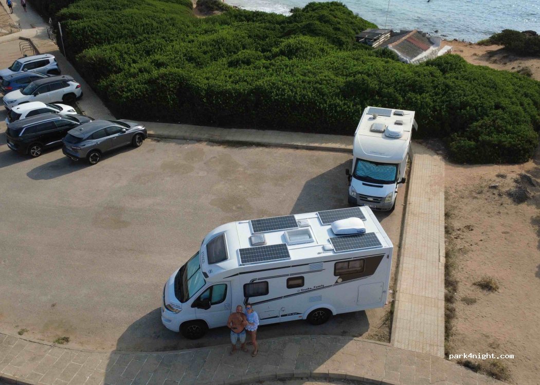 Parking amplio de asfalto, a pie de playa, sin servicios, noche muy tranquila.