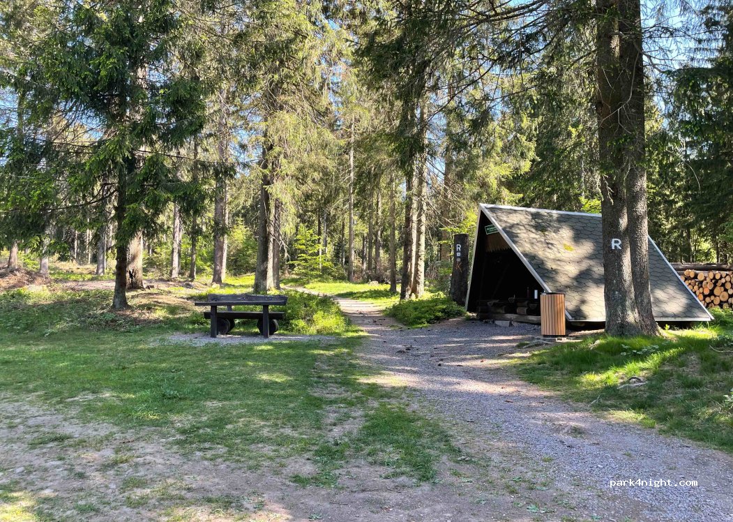 Schöner kleiner Wanderparkplatz direkt an der Straße. Tagsüber fahren schon viele Autos vorbei. Nachts aber nur sehr selten. Es gibt eine Schutzhütte, einen Mülleimer und eine Bank mit Tisch.