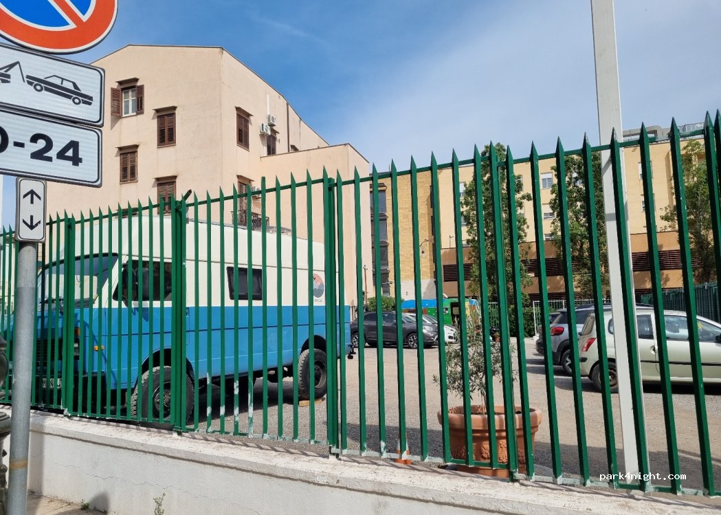 Secure guarded car park where you can also stay overnight. It's located on a fairly busy road, but... it's Palermo.